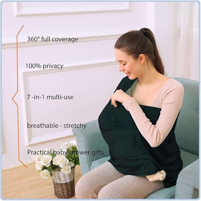 Car Seat Covers for Babies - Multi- use Nursing Carseat Canopy, Breastfeeding Covers, Baby Shower Gifts for Boys and Girls (Pure Black)