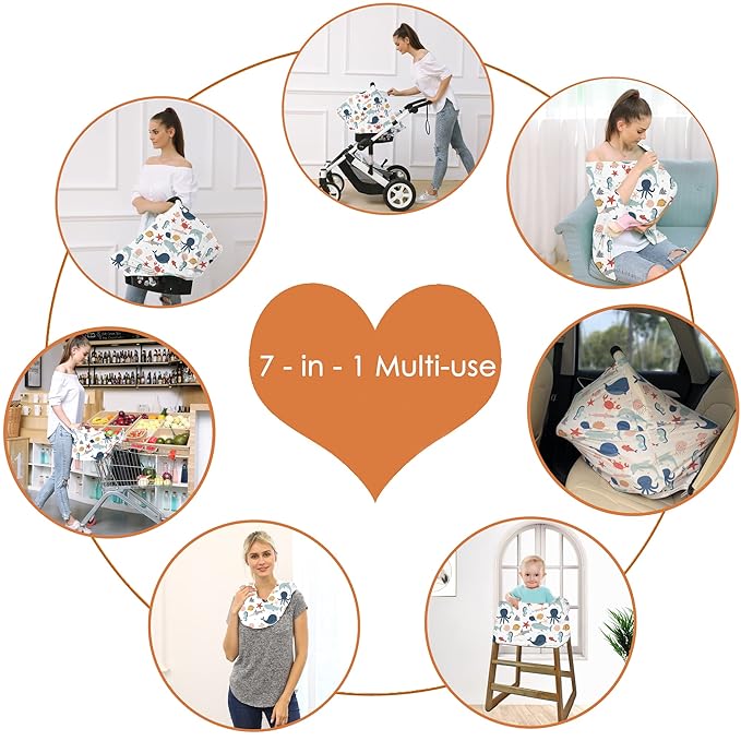 - Multi-use nursing covers for babies - Can use as baby car seat cover, breastfeeding covers, carseat canopy, infant stroller sun protection covers, shopping cart cover, high chair cover, which is a must have for every mother!