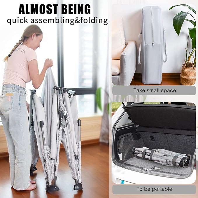- [PORTABLE]Because Heyo. Ja baby playpen foldable can be quickly folded into the configuration bag, occupying only about 2 cubic feet of space, it is easy to be plugged into the trunk of the car and carried out.