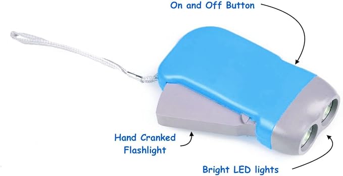 - 🦉TORCH - with bright LED lights. Simple hand cranked function recharges in-built batteries so no additional batteries or charging required, the compact size and wrist strap make it perfect for camping, sleepovers and backyard nighttime adventures.