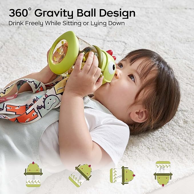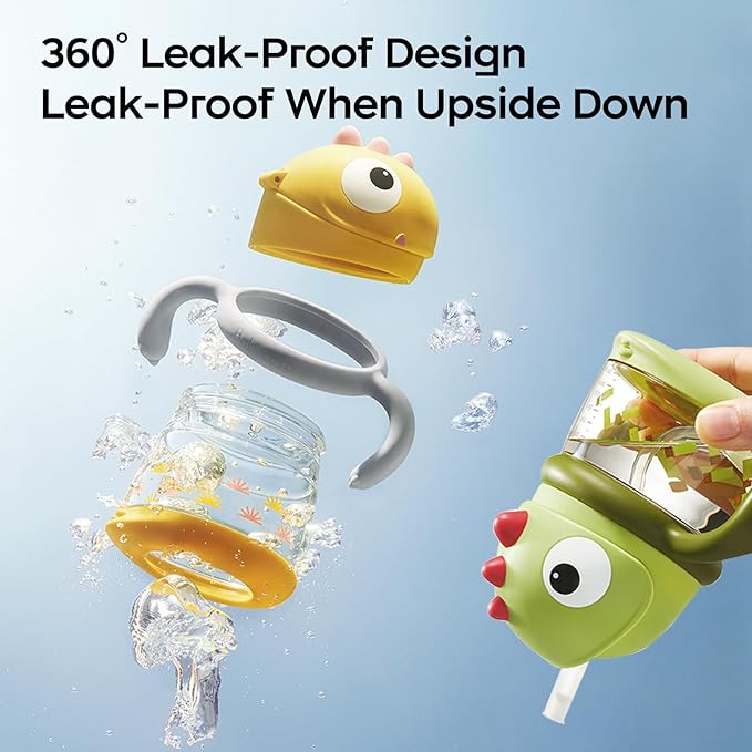 - 【Unique Design】Toddler cup holds 10oz/300ml, with colorful and cute dinosaur shape, handles allow toddlers to carry the bottle easily and make babies fall in love with drinking.Unidirectional air return hole can effectively prevent air from entering.
