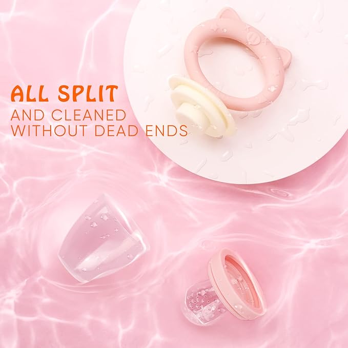 - 【EMBEDDED SNAP DESIGN】HAOBAOBEI pacifier for fruit teething is designed with built-in seal ring snap lock, 360°double seal full wrap to prevent spillage, seal tightly and difficult to open. The unique design of our food pacifier for babies can effectively prevent juice from leaking out caused by accidental opening by the baby, which can protect the health and hygiene of the baby.