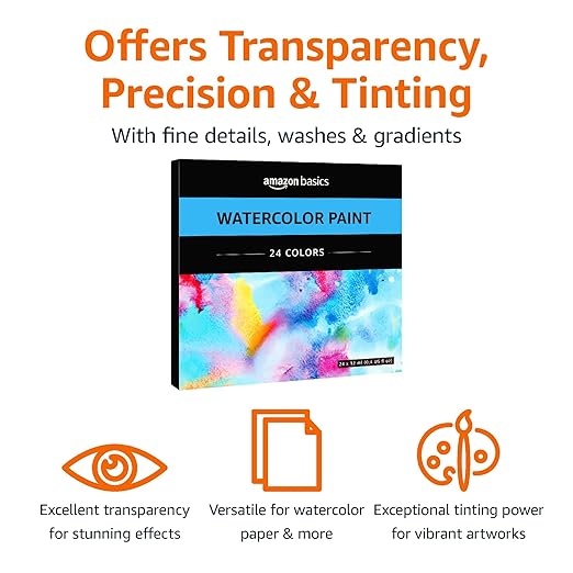 Amazon Basics Vibrant Watercolor Paint Set Tubes, 24 Colors, Assorted Colors