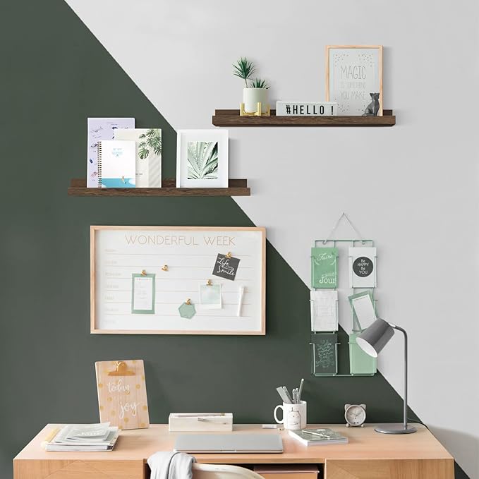 - 【Perfect solution for your walls】The picture ledge wall shelf is SAME SIZE as each other (L 23.1" x D 4.5" x H 2.2") and is such an easy way to display photos without making lots of holes in your walls. The wall shelves are crafted from Paulownia wood which are lightweight yet proportionately strong, sustainable real wood. They come fully assembled and all mounting hardware is included in the package.