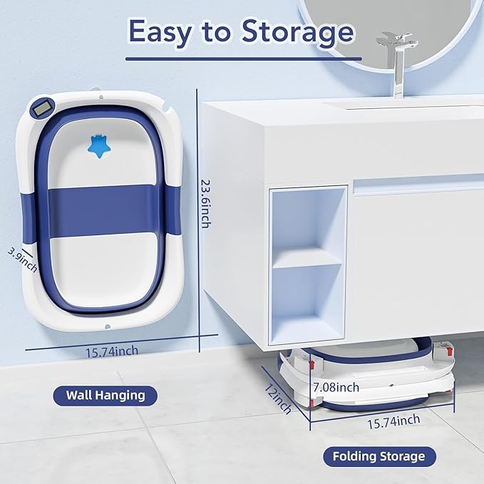 - 【Visible Temperature】Baby Bathtub is equipped with a temperature sensor, convenient for parents to adjust the water temperature in time. Ensure the safety and comfort of the baby when bathing.