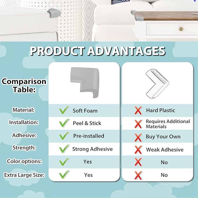 - Easy Installation: All of our baby proofing edge guards are pre-taped.You can just clean the corner of the furnitures, tear off the tape, align it with the corner, then stick the edge guards and press it gently. The whole process will take you no more than one minute.