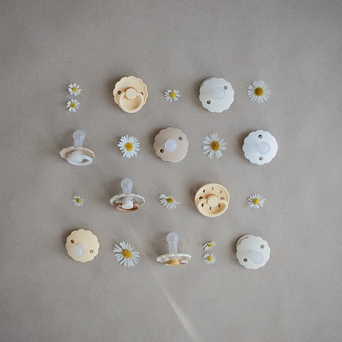 FRIGG Daisy SilkySoft Silicone Baby Pacifier | Made in Denmark | BPA-Free (Chamomile/Peach Bronze, 6-18 Months)