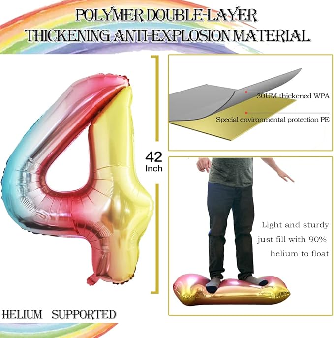 - Package Includes:Number 4 and 0 Balloons,1 Inflatable Straw,315 Inch Ribbon