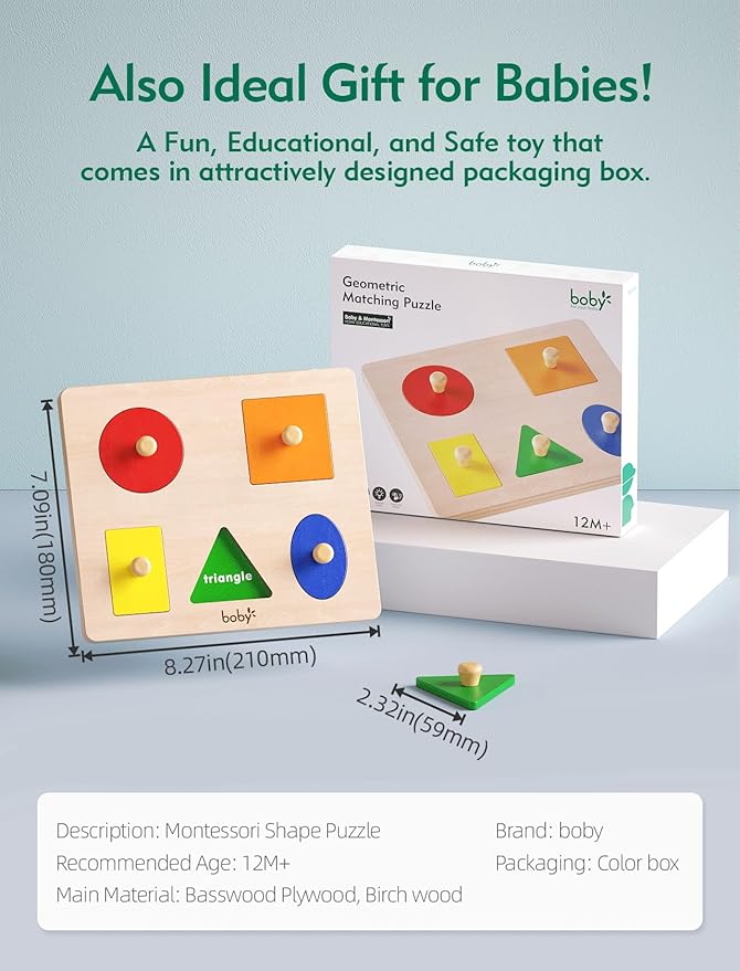 - Colorful Wooden Geometric Puzzle: This puzzle toy helps children recognize basic geometric shapes and enhances color identification skills through its vibrant colors and shapes.
