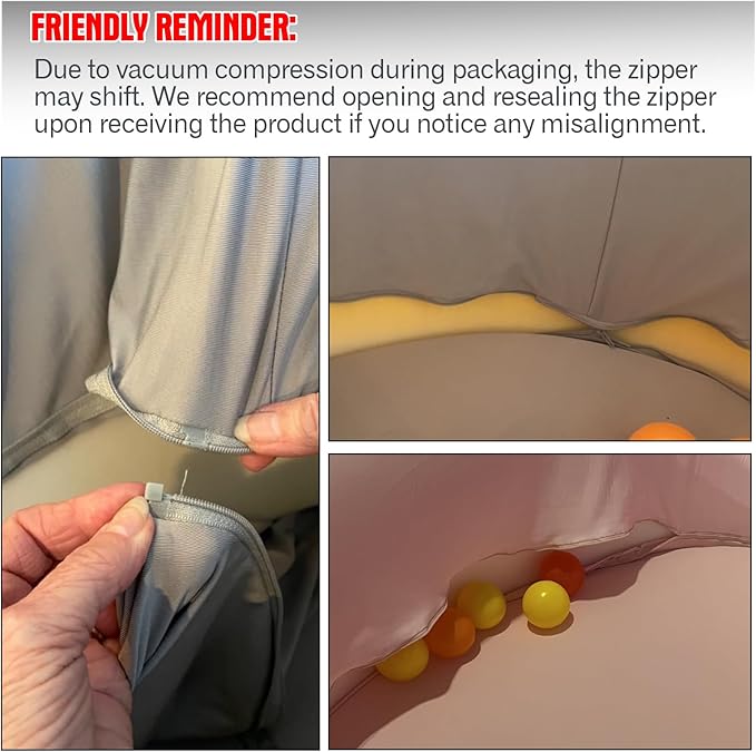 - 【Friendly reminder】Please note that the BALL is NOT included!!! Due to vacuum compression during packaging, the zipper may shift. We recommend opening and resealing the zipper upon receiving the product if you notice any misalignment.