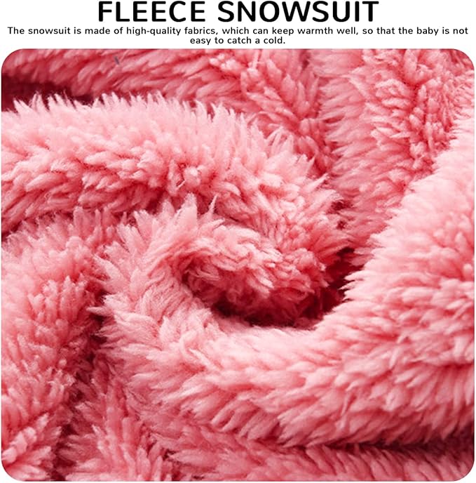 - ??Material: This baby snow suit made of high quality polyester fiber, double lining, fine polyester fiber cares for baby's delicate skin. The newborn winter outfit hoodie whole body jumpsuit design, keeps the baby's head and ears inside and warm when outing. The toddler boys & girls snow suit accompanies the baby through the cold winter.