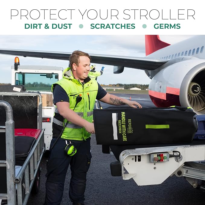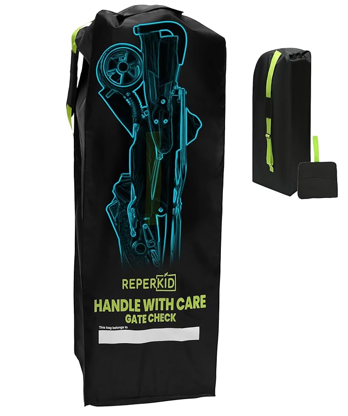 reperkid Umbrella Stroller Bag for Airplane Travel, Black and Green, 47" H x 15" W x 12" D, Fits Most Single and Double Umbrella Strollers – Premium Waterproof Cover, Adjustable Shoulder Strap