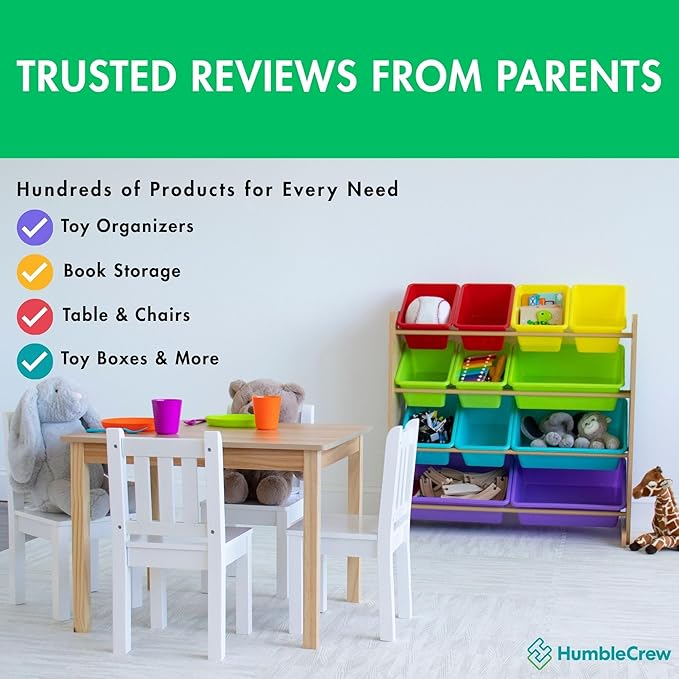 Humble Crew Kids Toy Storage Organizer with 12 Plastic Bins, Natural Wood/Rainbow – Removable Bins for Playroom, Bedroom, Toddler Furniture for Boys and Girls Ages