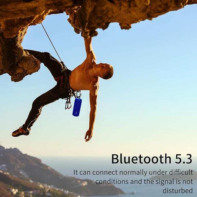 - ♩♪♫【Strong Bluetooth 5.3 signal】The bluetooth speakers portable wireless can connect normally under any difficult conditions and the signal is not disturbed. Antenna design with Bluetooth 5.3 provides greater wireless range 100ft and efficient connection to any Bluetooth devices. The Bluetooth 5.3 chip easily reads music play list. This wireless speaker not only can connect laptop, phone, MP3, iPhone,iPad, but also personal computer, TV or other non-Bluetooth device with 3.5mm audio jacks. The bluetooth speakers can be as gifts for men, women, friends or kids