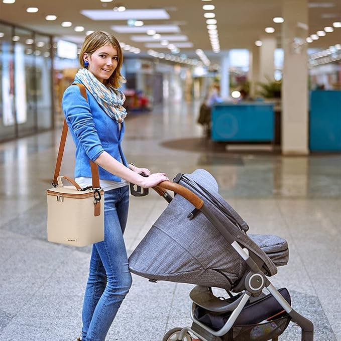 Breastmilk Cooler Bag with Ice Pack Fits 6 Baby Bottles Up to 9 Ounce, Baby Bottle Bag with Shoulder Strap for Nursing Mom Daycare, Cream