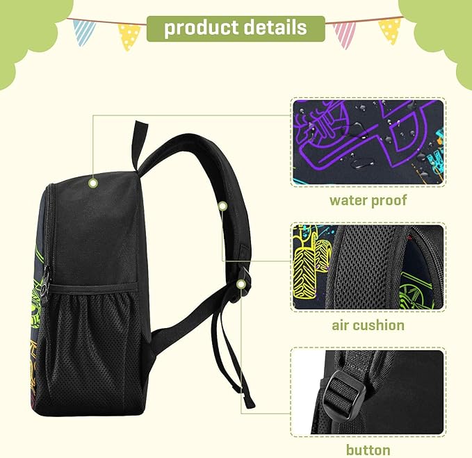 Colorful Monster Truck Toddler Backpack Waterproof Mini Backpack Boys/Girls Cute Small Kindergarten Pre School Bag