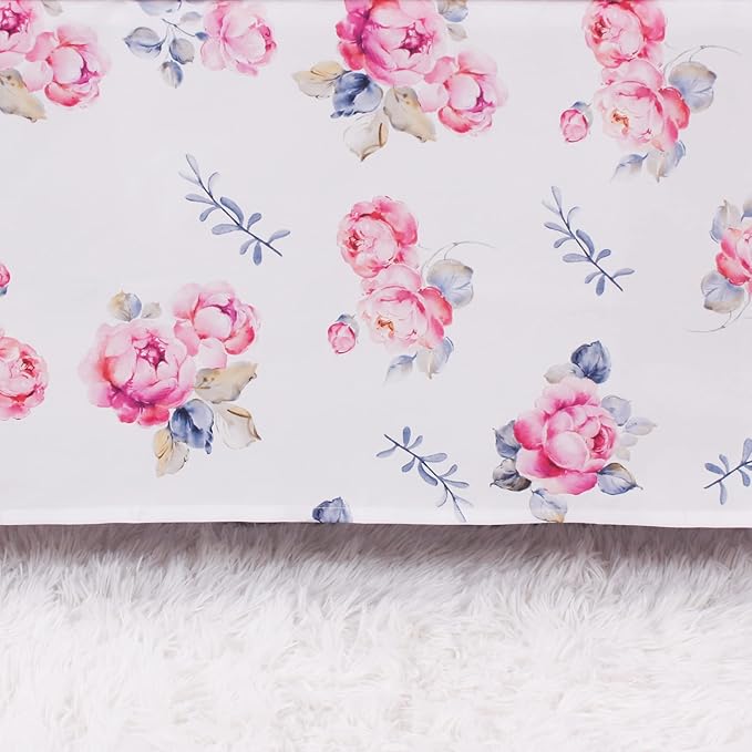 Belsden Floral 3 Piece Crib Bedding Set for Baby Boys Girls, Classic Nursery Bedding Essential Including Comforter, Crib Sheet and Crib Skirt, Ultra Soft Cozy, Floral Purple
