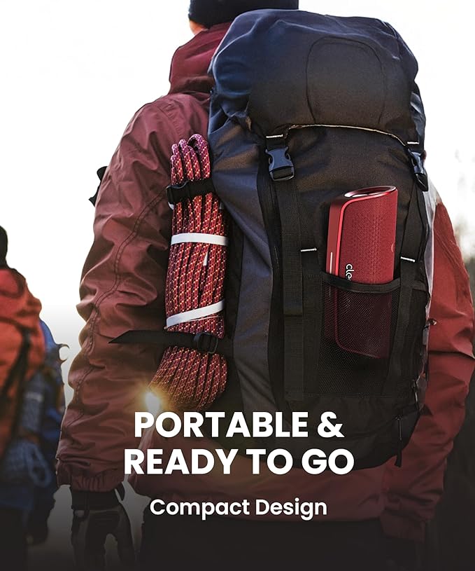 Cleer Scene Portable Bluetooth Speaker,IPX7 Waterproof,Powerful Sound and Deep Bass,Built-in Echo and Noise Canceling Microphone,12 Hours Battery,for Office,Home,Outdoors and Travel-Red