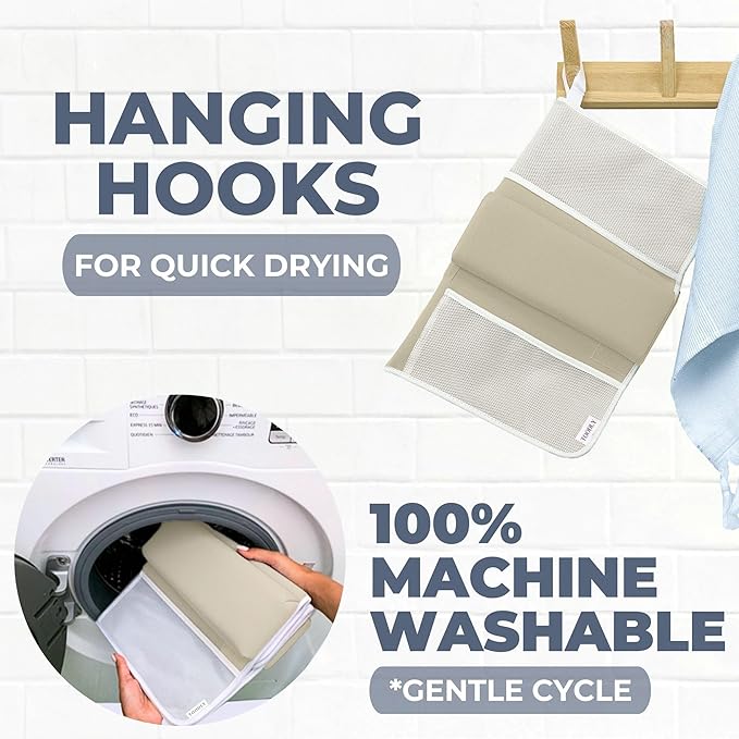 Comfortable Baby Bath Kneeler and Elbow Rest Pad Set – Thick Memory Foam Bath Kneeling Pad with Elbow Support – Baby Bathtub Cushion with Toy Organizer for Bathing Infant or Toddler - Beige