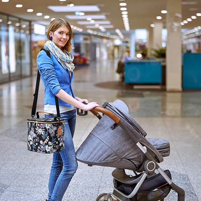 Breastmilk Cooler Bag with Ice Pack Fits 6 Baby Bottles Up to 9 Ounce, Baby Bottle Bag with Shoulder Strap for Nursing Mom Daycare, Floral