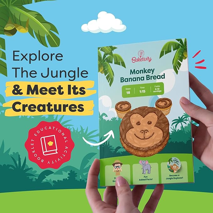 - EDUCATIONAL ACTIVITIES: Our monkey banana bread kit for kids is a hands-on baking lesson and a fun way to explore the jungle and its creatures. With Baketivity kits for kids, young chefs can build their confidence & create their very own kitchen masterpieces.