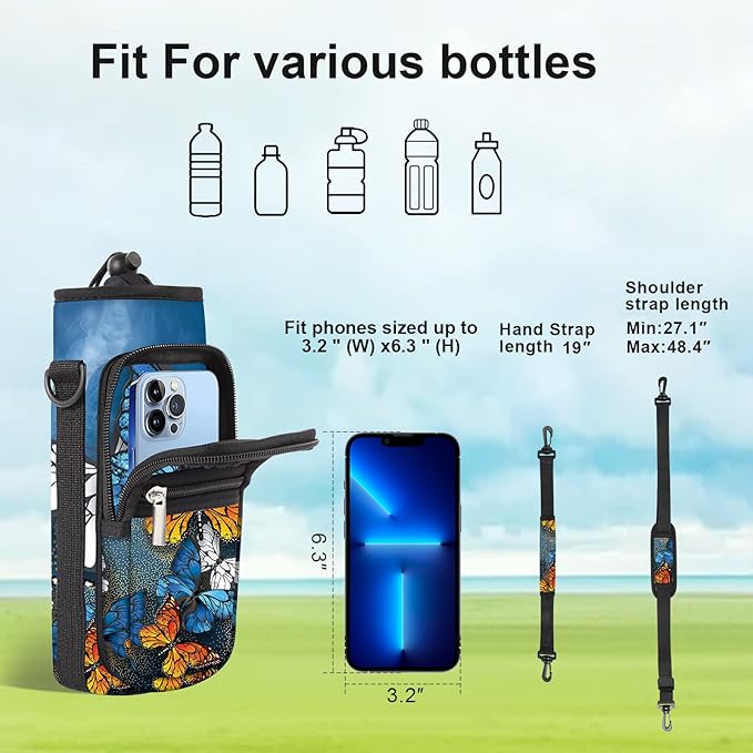 25/32/40/64oz Water Bottle Bag Holder Carrier-Insulated Crossbody Sling Case Sleeve with Strap & Pockets for Men Women Gym Cycling Travel Walking Hiking Camping