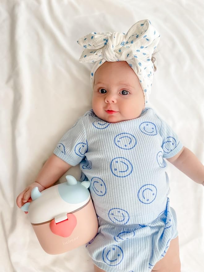 - 【Safety Material 】- With the same non-toxic and odorless material as the sippy cup, you can rest assured to use it store baby needed food. There are two tentacles on the milk powder dispense's lid are covered with soft rubber, which is round and soft. It is fine for baby to bite them.