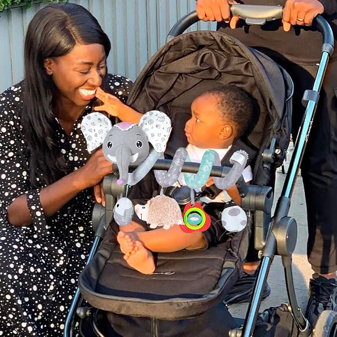 Car Seat Toys, Baby Activity Spiral Hanging Toys for Stroller Car Seat Crib Bar Bassinet Mobile, Musical Elephant Toys for Newborn Infant Boys Girls 0 3 6 12 Months