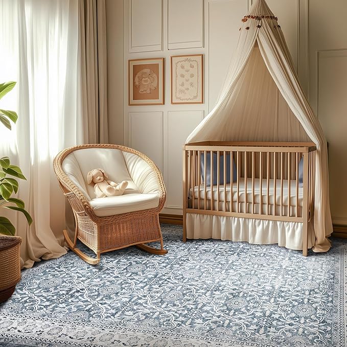 jinchan Floral Area Rugs 4x6 - Machine Washable Vintage Distressed Boho Design Throw Rug Stain Resistant Carpet Low Pile Ultra-Thin Non-Slip for Bedroom Living Room Dining Room Kitchen (4‘x6',Grey)