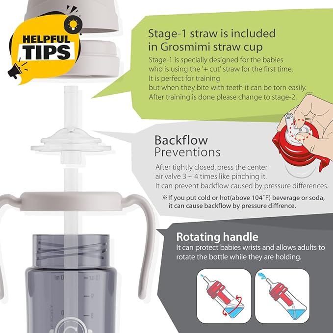 GROSMIMI Spill Proof no Spill Magic Sippy Cup with Straw with Handle for Baby and Toddlers, Customizable, PPSU, BPA Free 10 oz (Butter)