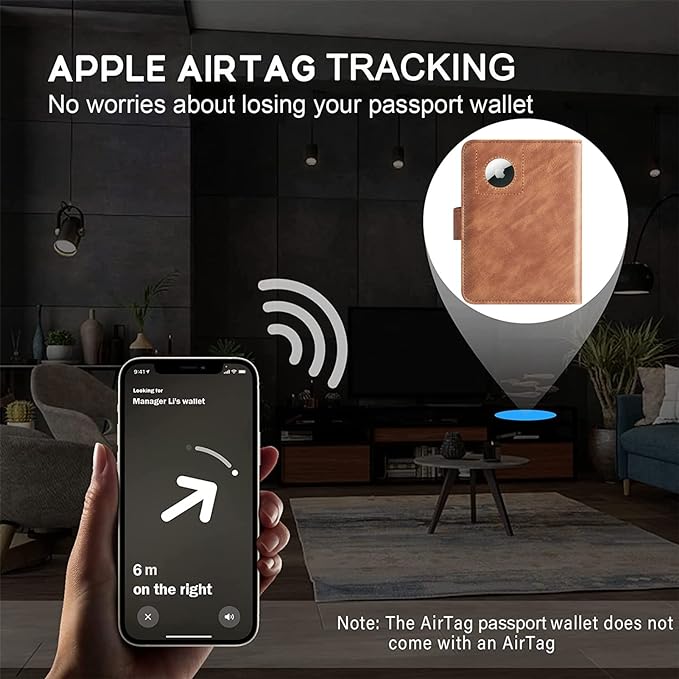 - PASSPORT AND AIRTAG HOLDER COMBO - The built-in holder for Apple Air Tag combine passport wallet and AirTag ideally to make sure you never lose your passport wallet again. Misplaced or lost your passport wallet? Keep track of and see where you last had it alongside friends and devices in the Find My app. The AirTag passport wallet does not come with an Airtag.