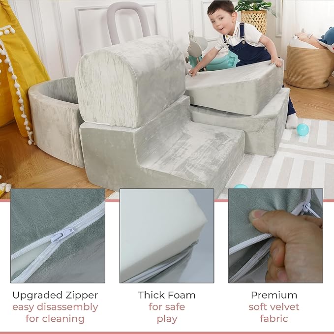 - HIGH DENSITY MEMORY FOAM - Invest in a play set that stands the test of time! Our foam climbing blocks are made from high-quality materials, ensuring long-lasting durability to withstand many play sessions.