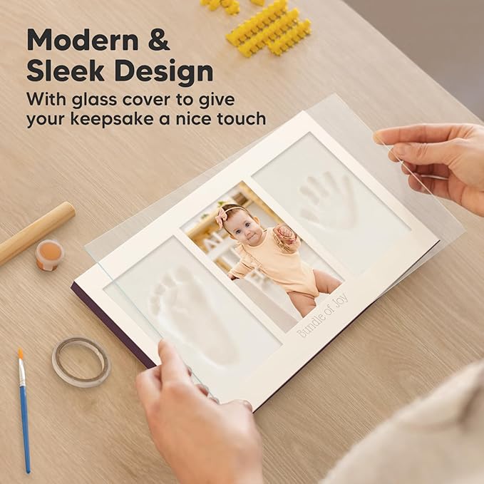 - 100% Safe Food-Grade Clay - Our baby picture frame features 100% baby-safe air-dry clay, perfect for preserving your baby prints. Our premium material ensures durability, the baby hand and footprint maker will look flawless for years to come.
