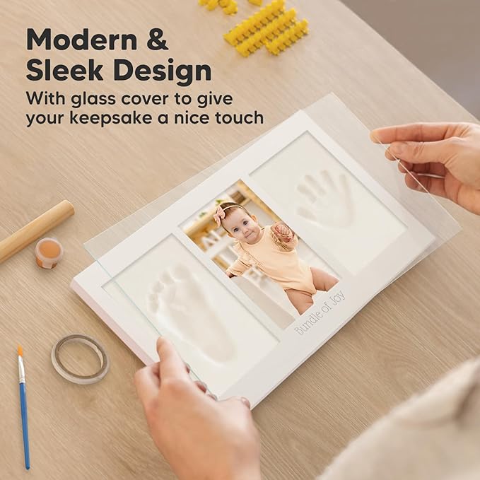 - Ideal Baby Shower Gift - If you are looking for baby registry items, our baby hand and footprint kit is an ideal choice! It captures cute memories and includes all you need, no additional purchases required to complete this Duo Baby Keepsake Frame.
