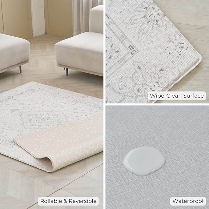 - WATERPROOF & REVERSIBLE - easy to clean with baby wipes. Two-sided for learning and interior