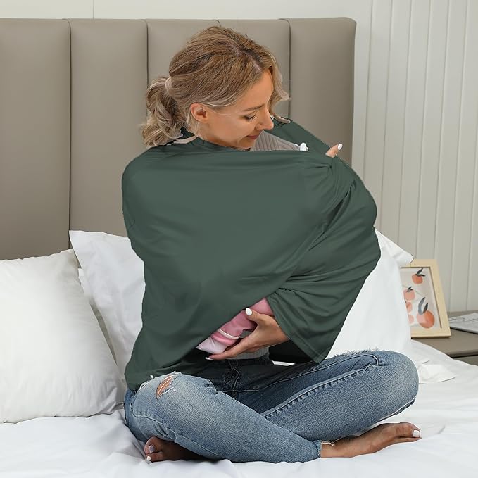 Breathable Car Seat Cover for Babies – Multi-Purpose Soft Rayon Nursing Cover for Breastfeeding, High Stretchy Infant Carseat Canopy, Stroller Cover (Smooth Rayon, Roman Green)
