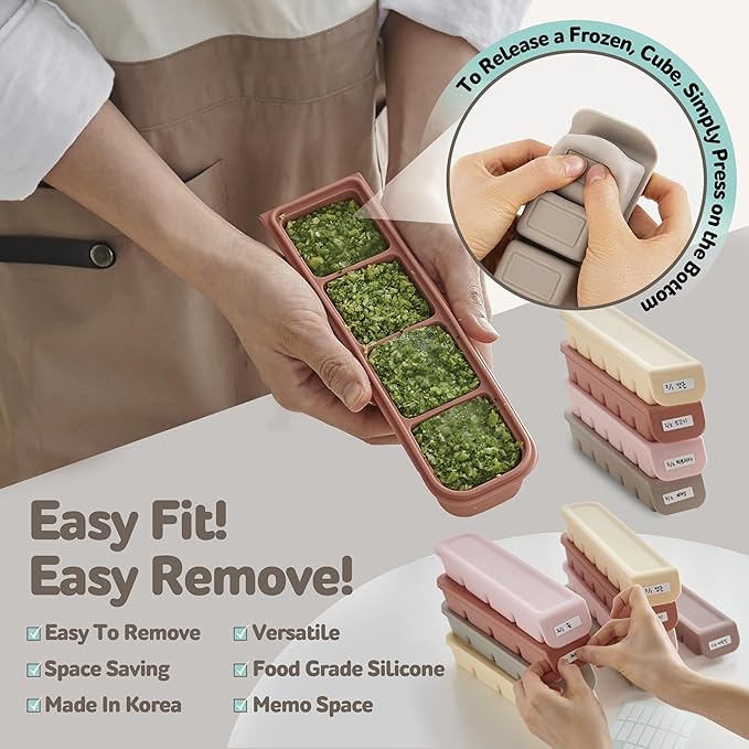 - ✅ Slim and Compact Design: These silicone freezer containers are available in 4, 6 or 12 compartments, featuring a stackable, ultra-slim and ergonomic design for easy storage. The ultra-wide area which receives cold air ensures a faster freezing process of the contents!