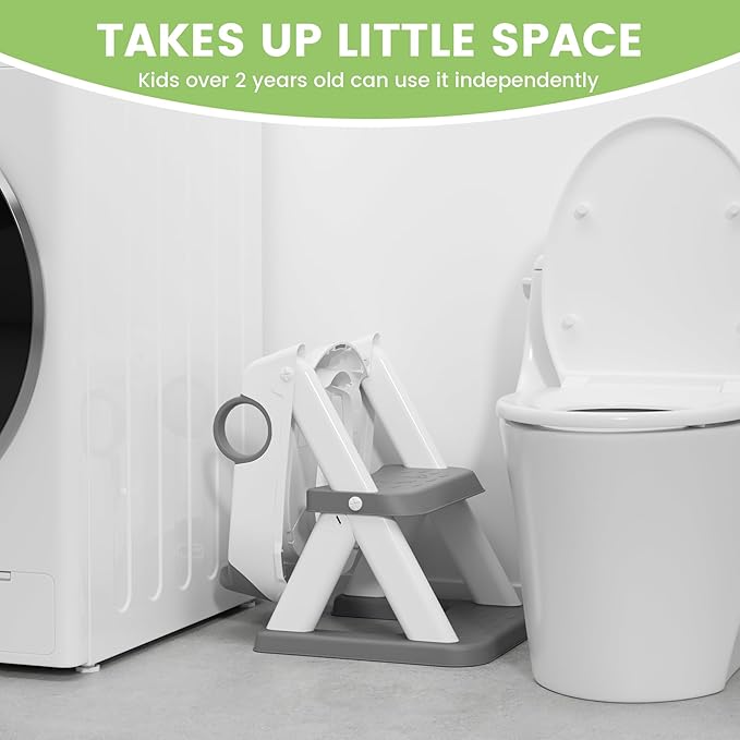 - 2-in-1 Usage : Our multifunctional toilet seat can be used as a step stool for children to reach higher places in addition to being a training toilet ladder. It is convenient for your kids to wash their hands or take things. The product is light and convenient for children to carry by themselves, and the foldable design makes it easy to store.