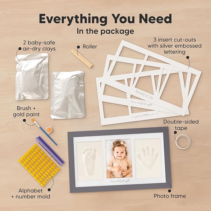 - 100% Safe Food-Grade Clay - Our baby picture frame features 100% baby-safe air-dry clay, perfect for preserving your baby prints. Our premium material ensures durability, the baby hand and footprint maker will look flawless for years to come.