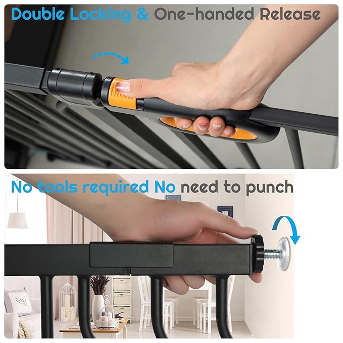- 【Easy to Use】Adults can easily open the baby door with one hand, it is easy to open and close. Perfect for stairways, doorways, or hallways, creating a safe growth environment.