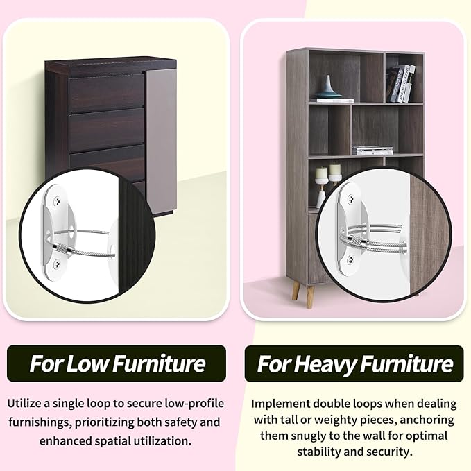 - Versatile Protection: Safeguard your space by anchoring furniture items such as bookcases, dressers, cabinets and wardrobes to the wall, effectively reducing incidents with curious toddlers. The detachable anti-tip anchor offers flexibility, allowing easy removal for cleaning or furniture repositioning.