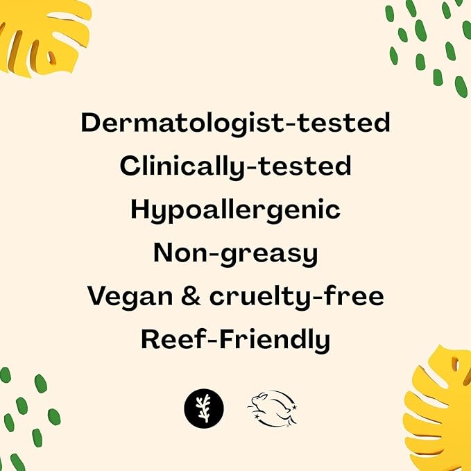 - Product Benefits : Dermatologist tested, vegan, reef-friendly, water-resistant sun protection with moisturizing benefits and easy application on delicate areas Dermatologist tested, vegan, reef-friendly, water-resistant sun protection with moisturizing benefits and easy application on delicate areas