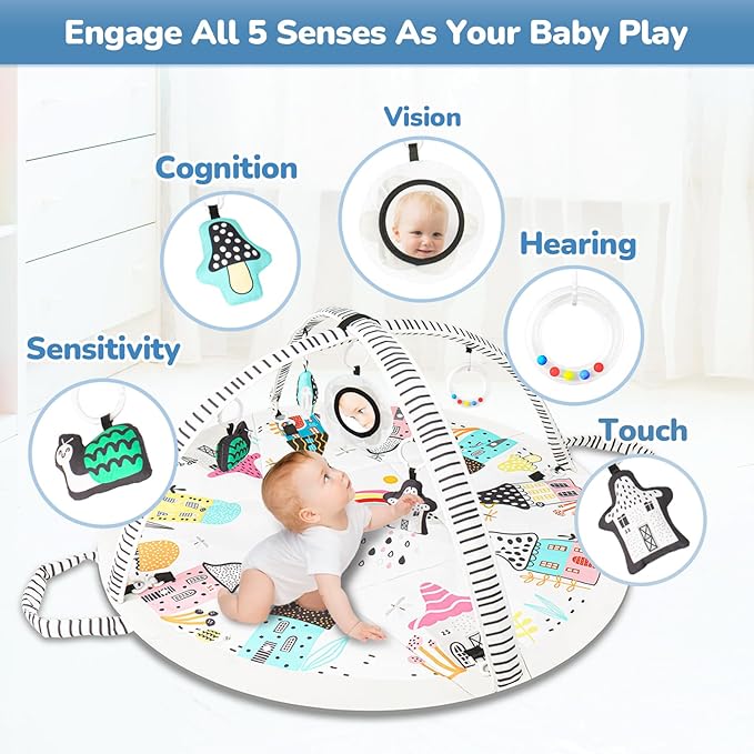 - 【Exclusive Foldable Design】: Li'l Pengyu baby play mat with exclusive foldable design, it's easy transforms into a handy bag for storing small toys. It's the perfect companion for camping and everyday play. Practicality meets convenience!