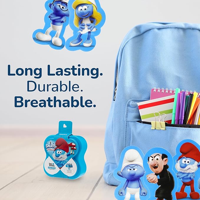 - EASY TO CARRY AND USE: These cute and colorful Smurfs children's bandages are easy to take with you for travel, and easy to store in a home first aid kit; these healing bandages are perfect for school, summer camp, camping trips, weekend getaways and more