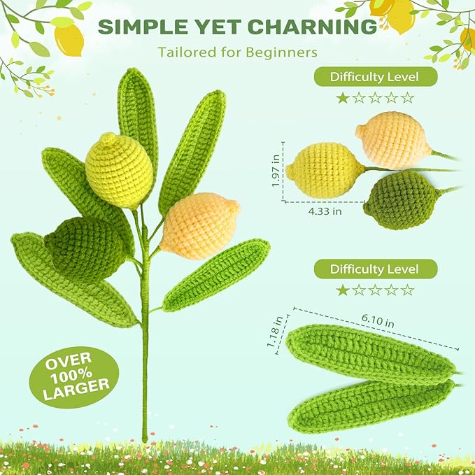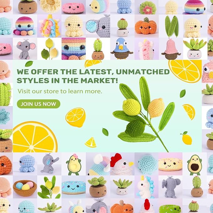 Crochetta Crochet Kit for Beginners, Crochet Kit w Step-by-Step Video Tutorials, Crochet Starter Kit Learn to Crochet Kits for Adults Kids Beginners, 3 Lemons Familly (40%+ Yarn Content)