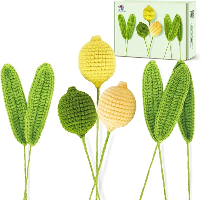 - All-In-One Crochet Starter Kit: CROCHETTA beginner crochet kit includes everything you need to start: 5 different colored yarns, ample stuffing, 1 yarn needle, 5 stitch markers, 2 ergonomic crochet hooks, 1 pair of scissors, 1 hot melt glue stick, 8 iron wires, 1 crochet lemon pattern, and a beginner's basic crochet manual.