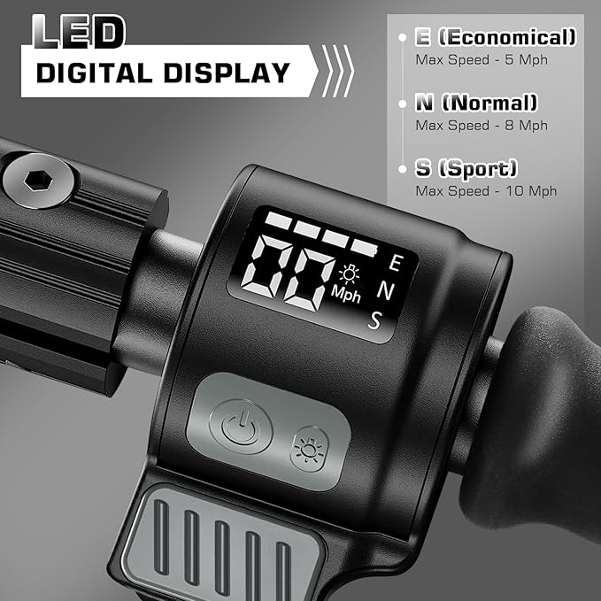 - 【🛴New Generation LED Display】The kids electric scooter E35 is equipped with an LED display that clearly shows riding speed mode, real-time speed, and battery level. 3 speed modes: 5 MPH for beginners and 8 MPH/10 MPH for advanced players (varies depending on usage and environment). This electric scooter for kids ages 8-12 ensures a smooth and controlled ride.