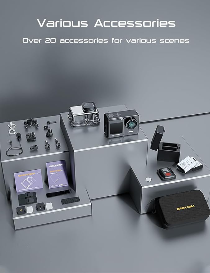 - 📸【4K Ultra HD Video & 20MP Photo】Features professional 4K 30fps & 2.7K 60fps video with 20MP photos, Apexcam X70PRO 4K action camera can help you record the outdoor world clearly and bring you a great experience. It's also an amazing gift for your family and friends.