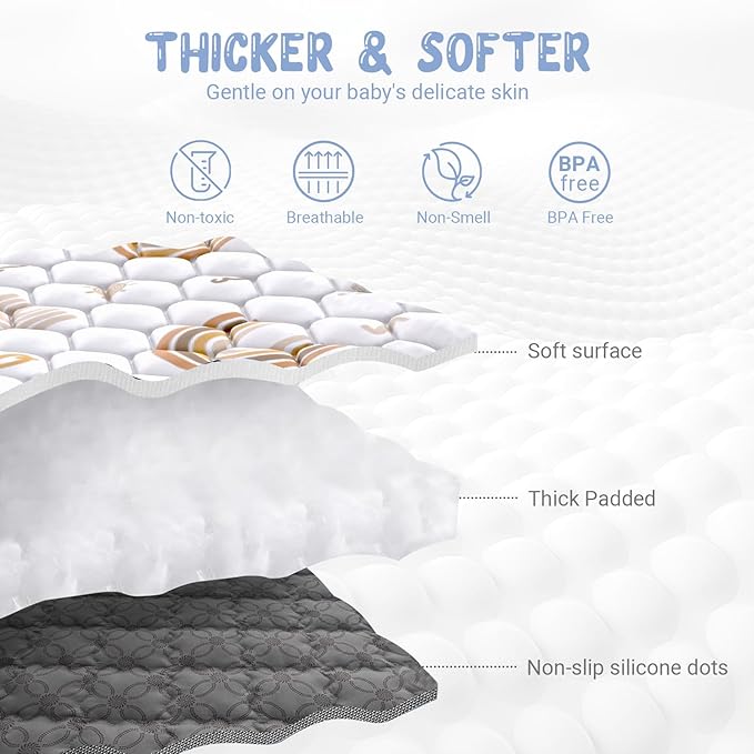 - 【Portable & Machine Washable】50x50 play mat is a single durable piece that can be easily folded and packed, making it perfect for on-the-go playtime. the special quilting process can support it to be washed in the washing machine without deformation, easy to clean and maintain.