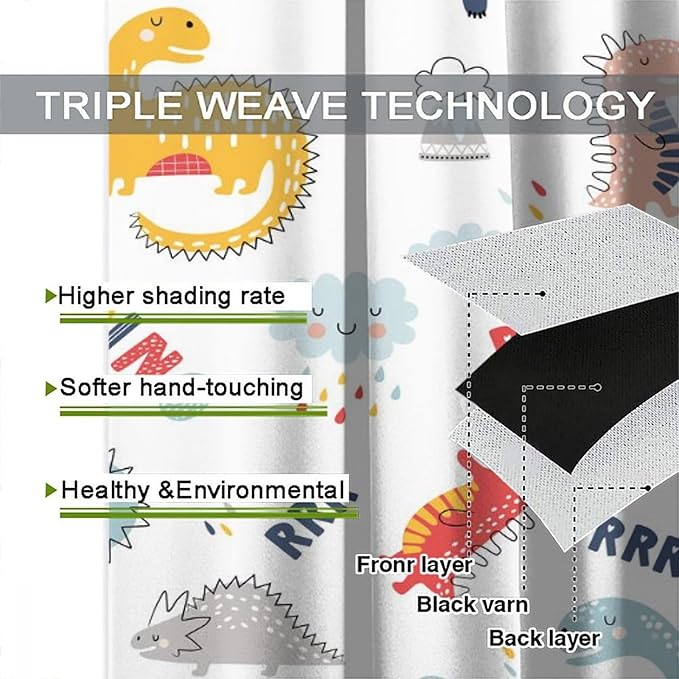 Cartoon Dinosaur Curtains for Kids Boys Girls Home Decor Colorful Cute Dino Animals Print Pattern Rod Pocket Blackout Window Drapes for Nursery Baby Bedroom Playroom W36xL63in 2 Panels